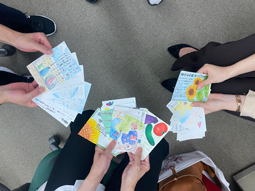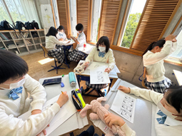暑中見舞いはがきコンテストの提出日でした。まず担任団による第一審査があります。どの作品も力作なので、担任団は迷っていました。その審査を通過した作品から、生徒会執行部で金賞・銀賞・銅賞が決定します。受賞者には図書カードがプレゼントされます!