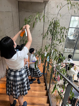 今日は中等部全体で七夕の装飾を行いました。生徒一人ひとりが楽しそうに、それぞれの願いを込めた短冊を飾っていました。この時間が生徒にとって楽しい思い出として残ってくれたらと思います。