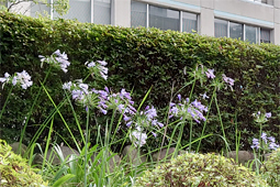 梅雨の晴れ間に、校地探検に。むくげの花とアガパンサスの花に出会いました。この時季はアジサイなどきれいな紫色の花とよく出会います。生徒の皆さんも新しい出会いを求めて探検はいかがですか?また、オープンスクールなどで来校なさる機会には本校で出会える様々な植物をお楽しみください。