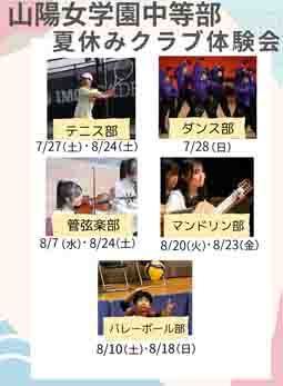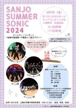 山陽女学園では今年も夏休み期間中に様々なイベントがあります。「SANJO SUMMER SONIC」は4つのクラブによるチャリティコンサートです。ぜひご来場ください。
