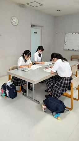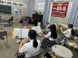 夏休みに入り校舎では朝からクラブ活動が活発に行われています。管弦楽部では各楽器に分かれてパート練習をしていました。暑さを感じさせない爽やかな音が響いていました。