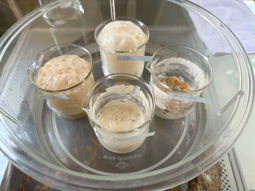 理科実験室では、サイエンス同好会が何やら面白そうな実験をしていました。たずねてみると、肉眼では見ることのできない“微生物のはたらき”に注目した研究をしているのだそうです。パンづくりには「酵母(イースト)」という微生物が欠かせません。これは酵母の「発酵」というはたらきを利用して、パン生地を膨らませているためです。彼女たちは、この酵母のはたらきが、別の微生物(納豆菌や乳酸菌)を混ぜると弱まるのではないかと考えて、実験を進めているそうです。これからも、探究心を大切にして、研究を楽しんでほしいと思います。
