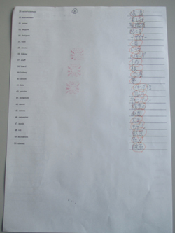 3年生の英語では毎週英単語テストを実施しています。語彙力を高めるために教科書で学ぶ単語に加え、2000語も入った単語帳を使っています。毎回50個ずつ、日本語の意味を書きます。満点を取るのは至難の業。写真は先週100点をとった生徒のものです。”たいへんよくできました!”の、はんこ3つです。
