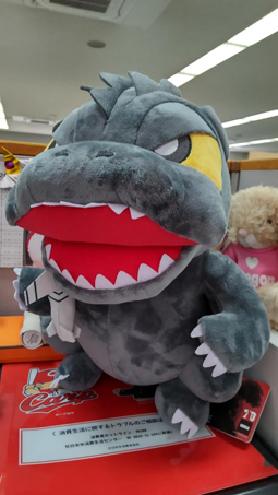 先日の私の誕生日、受け持ち授業の生徒たちがゴジラのぬいぐるみをプレゼントしてくれました。私がぬいぐるみ好きなことと、映画のゴジラ好きなことを覚えていて、融合してくれたのでしょう。3人でUFOキャッチャーをして、一人1回ずつのところでつかめたことに大興奮したそうです。