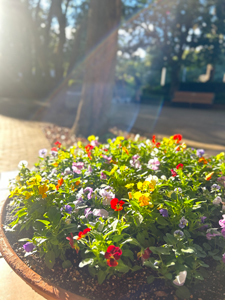 先日、花をビオラに植え替えしました。ビオラは寒い冬を乗り越えて、春に満開になります。色とりどりの花が楽しみですね。