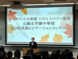 「第9回中等部英語レシテーション・コンテスト」が行われました。1学年から3学年の発表者たちは全員緊張している様子でした。人前でスピーチをするのは緊張したと思いますが、がんばっていました。聴いている人たちも応援しているのが伝わってくる会場でした。今回の経験を未来につなげ、世界にはばたいてほしいです。