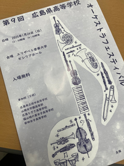 管弦楽部は1月26日(日)にエリザベト音楽大学でおこなわれた広島県高等学校オーケストラフェスティバルに参加しました。県内にオーケストラ部のある学校と合同演奏をする機会もあり、普段の編成では味わうことのできない大迫力のサウンドを体感することができました。この場での経験を今日からの部活にも活かしてほしいと思います。