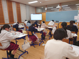 校内でおこなわれている年賀はがきコンテストに向けて年賀状を作成中です。干支と一緒に新年の挨拶と感謝の気持ちを考えながら書いていました。普段からお世話になっている方はもちろん、なかなか連絡を取らない相手にもしっかり思いが伝わるといいなと思いました。